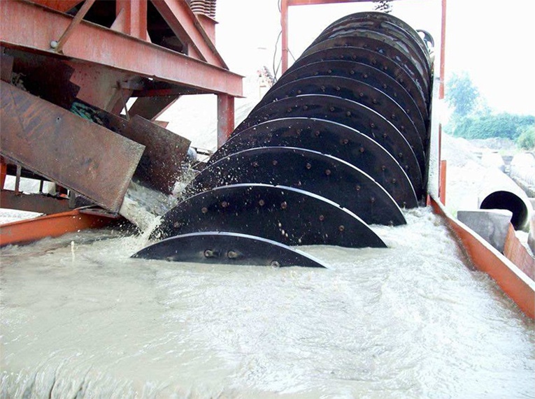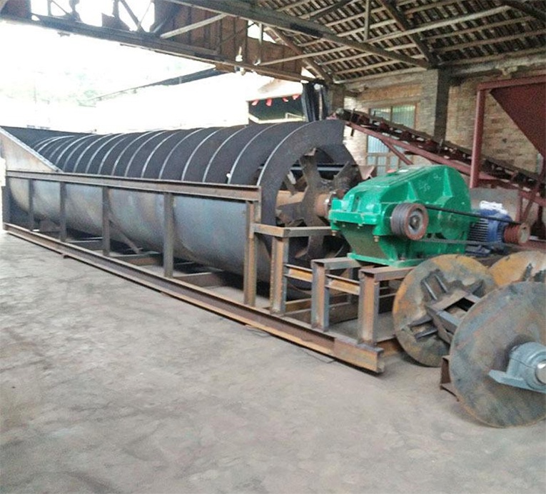 其中,這里的石更多的是指砂子,所以也被稱為洗砂機(jī)。因其外觀和原理不同,也被稱為螺旋洗石機(jī),滾筒洗石機(jī),水輪洗石機(jī),震動(dòng)洗石機(jī)等。用于建筑工地、砂石廠、預(yù)制廠及水電工地大量用砂石的脫泥、篩選作業(yè),也可用于礦石選別作業(yè)的機(jī)器。螺旋式洗石機(jī)遇在傾斜布置的水槽下部形成沉淀池,螺旋頭部沒(méi)入沉淀池內(nèi),螺旋由電動(dòng)機(jī)經(jīng)減速驅(qū)動(dòng)螺旋旋轉(zhuǎn),由沉淀池底部給入清洗水,從而完成清洗,脫水和分級(jí)三種功能。