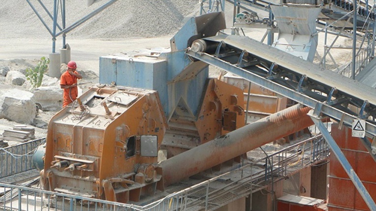 大塊石料經(jīng)料倉(cāng)由振動(dòng)給料機(jī)均勻地送進(jìn)鄂式破碎機(jī)進(jìn)行粗碎,粗碎后的石料由膠帶輸送機(jī)送到反擊式破碎機(jī)進(jìn)行進(jìn)一步破碎;細(xì)碎后的石料由膠帶輸送機(jī)送進(jìn)振動(dòng)篩進(jìn)行篩分,篩分出幾種不同規(guī)格的石子,滿足粒度要求的石子由成品膠帶輸送機(jī)送往成品料堆;不滿足粒度要求的石子由膠帶輸送機(jī)返料送到反擊式破碎機(jī)進(jìn)行再次破碎。成品粒度可按照用戶的需求進(jìn)行組合和分級(jí),為保護(hù)環(huán)境,可配備輔助的除塵設(shè)備。